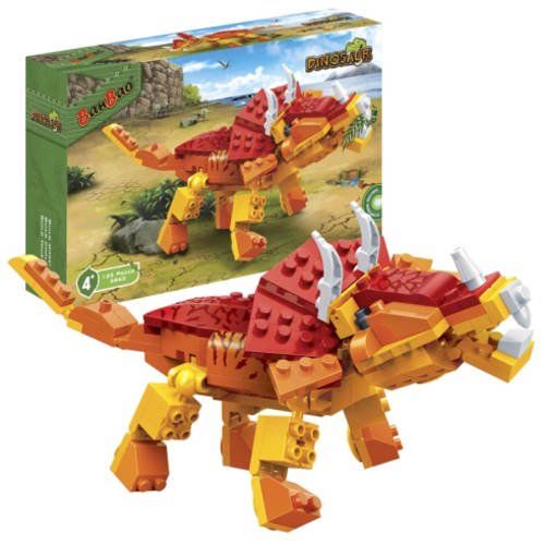 Набор конструктора из серии "Динозаврики" состоит из 125 элементов с помощью которых можно собрать фигурку динозавра - трицератопса. Детали набора небольшого размера, предназначены для детей старше 4-х лет.