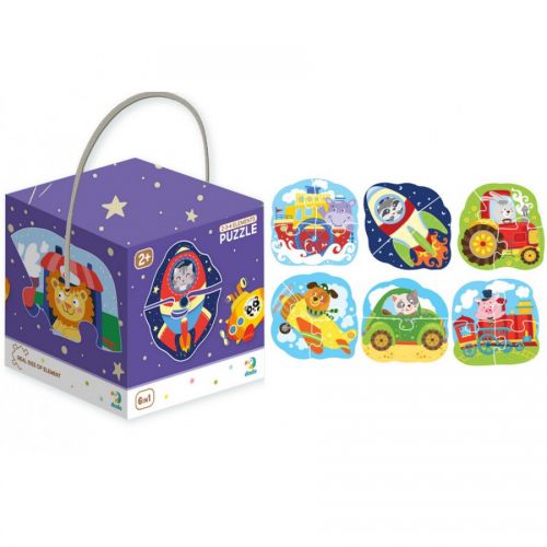 6 ярких пазлов с изображениями транспорта, которые состоят из 2-х, 3-х или 4-х элементов. Детальки крупные и яркие. Игра с пазлами поможет малышу изучить названия различного транспорта, развить усидчивость, внимание и мелкую моторику._