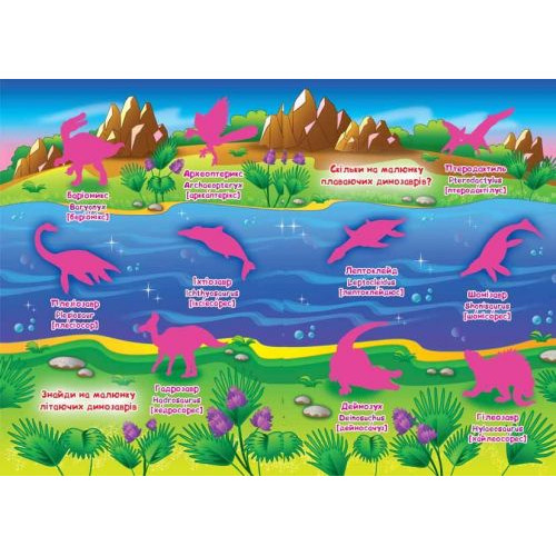 Большая книга "Развивающие наклейки. Умные задания. Мир динозавров" (укр)