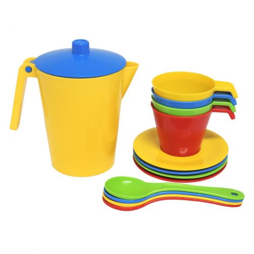 Детский набор пластиковой посудки состоит из 13 элементов. В наборе: 4 чашечки, 4 блюдечка, 4 ложечки и чайник. Набор выполнен из качественного и прочного пластика. Набор игрушечной посудки позволит ребенку разыгрывать чаепития с друзьями или с игрушками. Развивает воображение и координацию. Размер чайника: 11 х 11.5 х 9 см.