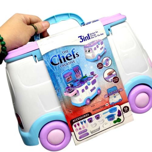 Игровой набор "Кухня на колесах". Отправляйся в увлекательное путешествие с собственной кухней. В наборе есть все необходимое для увлекательной игры в шеф-повара прямо дома, с собственным автобусом-кухней. В комплект входит набор столовых приборов, тарелочки и посуда для приготовления пищи, и, конечно, сами продукты. Это идеальный выбор для детей от 3 лет, мечтающих погрузиться в мир настоящего повара! Изготовлен из прочного пластика.