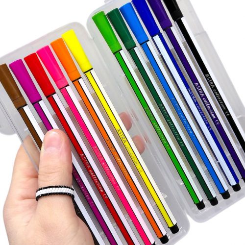 Фломастери шестигранні у пластиковій коробці 12 кольорів