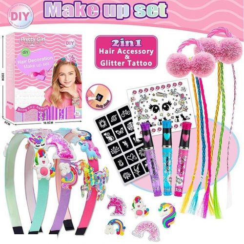 Набор украшений 3 обруча, 3 ручки с блестками, прядки, резинки, декоративные элементы, двусторонние наклейки-фиксаторы, в коробке