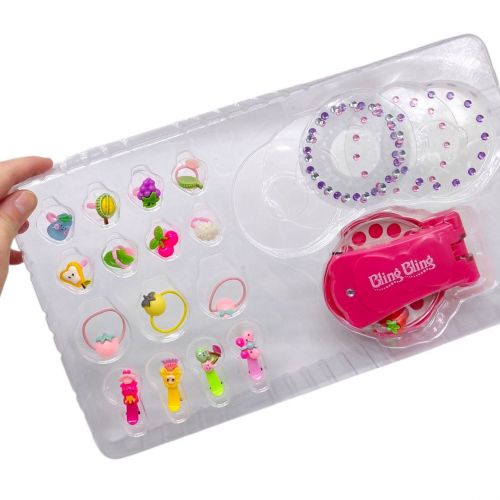 Комплектация: Инструмент для декорирования – 1 шт. Пластина или кассета со стразами – 1 шт. Набор декоративных украшений Резинки для волос (набор) Упаковка – 1 шт.