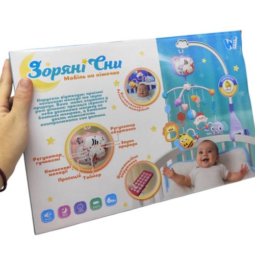 Карусель музыкальная (мобиль) "Звездные сны" (Укр озвучка, колыбельные, регулировка громкости, таймер, проектор)