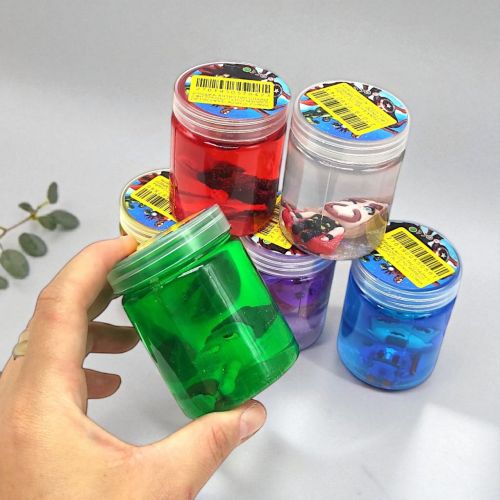 Лизун с игрушкой внутри "Марвел". В серии присутствуют разные расцветки и все слаймы переливаются блестками. Упакован в надежную баночку, которая не пропускает воздух, что помогает лизуну не засохнуть. Снимает стресс и помогает расслабиться. Рекомендовано для детей старше 3 лет.