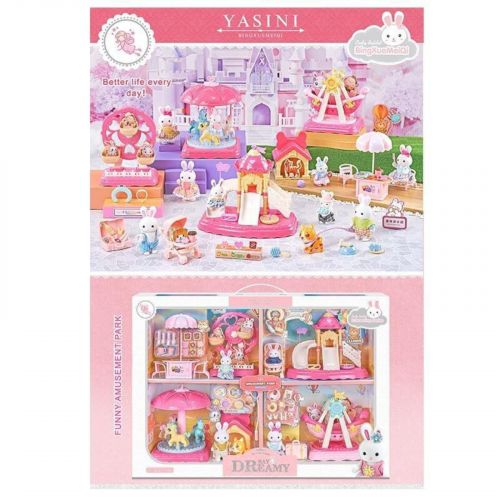 Парк развлечений 4 флоксовые фигурки, аттракционы, аксессуары, любимец, мебель, в коробке, микс видов