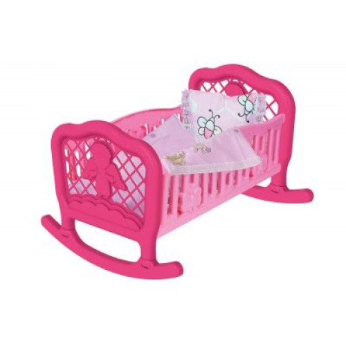 Яркая пластиковая колыбелька для кукол и других игрушек. В наборе с кроваткой также есть простынь, подушка и одеяльце. Размер кроватки: 45 х 34 х 27 см.Колыбель ТехноК.