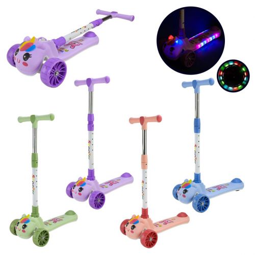 Самокат дитячий 3-х коліс складний, колеса PU муз, батар., світло, звук (ЗЕЛЕНИЙ)