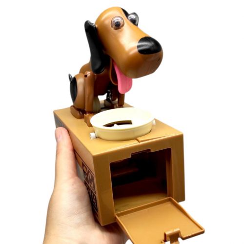Детская копилка – это веселый и полезный способ учить детей финансовой грамотности и развивать бережливость. Посредством этой игрушки дети учатся ценить деньги, понимать их важность и испытывают радость от собственных накоплений. Чтобы положить монетки в копилку, достаточно положить их в мисочку — голодная собачка с радостью начнет их есть, таким образом монетки упадут в специальное отделение, где будут храниться, пока его не откроют. Изготовлен из качественного и прочного пластика.