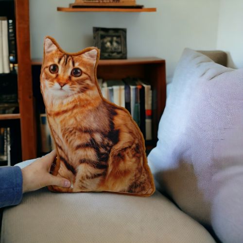 Мягкая подушка в виде котика – это прекрасная игрушечная подушка, которая по форме и образу напоминает симпатичного котенка. Она изготовлена из мягкого и приятного материала. Различная длина ворса с каждой из сторон. Подушка обеспечивает комфорт во время сна или отдыха, или может просто служить милым декором комнаты. Размер – 40 х 28 х 12 см.