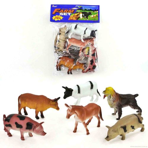 Набор "Домашние животные". 6 животных: 2 свиньи, корова, бык, лошадь, собака. Твердая резина. Размер одной игрушки - 12 х 3 х 7,5 см.