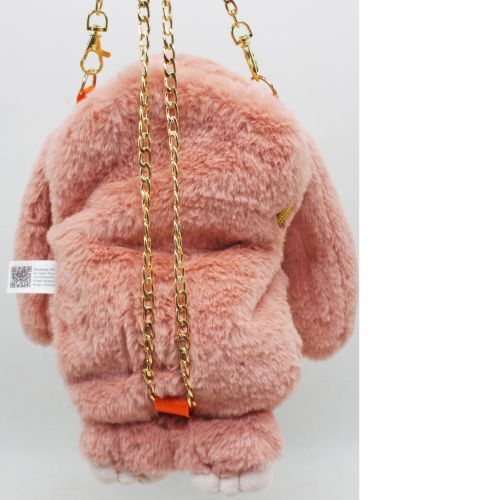 Милый детский рюкзачок в виде зайчика. Очень мягкий и приятный на ощупь, выполнен из яркой пушистой ткани. Глазки пластиковые. Оснащен двумя металлическими лямками-цепочками на карабинах. Есть одно отделение на молнии, в которое можно положить телефон, записную книжку, ключи или другие небольшие принадлежности. Размер рюкзака - 27х20х11 см.