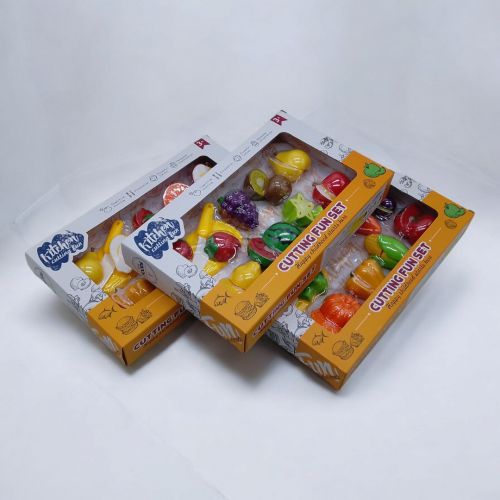 - 8 продуктов (овощей и фруктов) с липучками, каждый из которых разделён на 2 половинки.