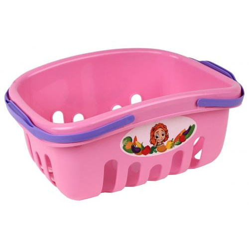 Яркая пластиковая корзинка с ручками, в которую можно складывать продукты, играя в магазин, или другие игрушки. Размер: 27 х 12 х 18,5 см.