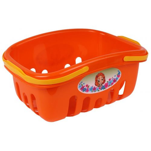Яркая пластиковая корзинка с ручками, в которую можно складывать продукты, играя в магазин, или другие игрушки. Размер: 27 х 12 х 18,5 см.