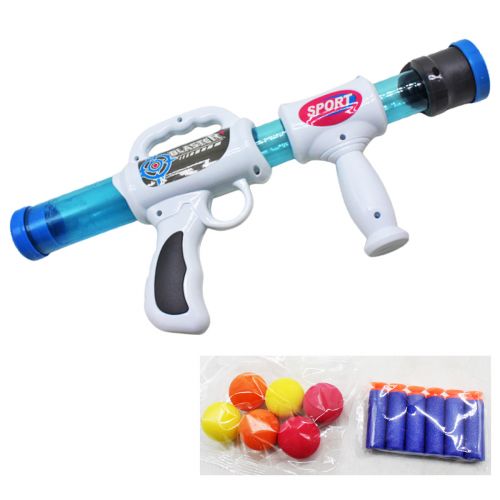 Комплектация: Ружье, 6 поролоновых патронов, 6 шариков, сменная насадка на дуло