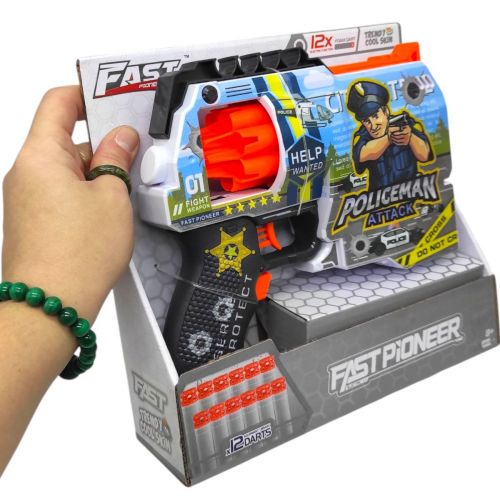 Игрушечный пистолет (бластер) с барабаном и мягкими патронами (21х19 см, коробка – 24х22х6,5 см)