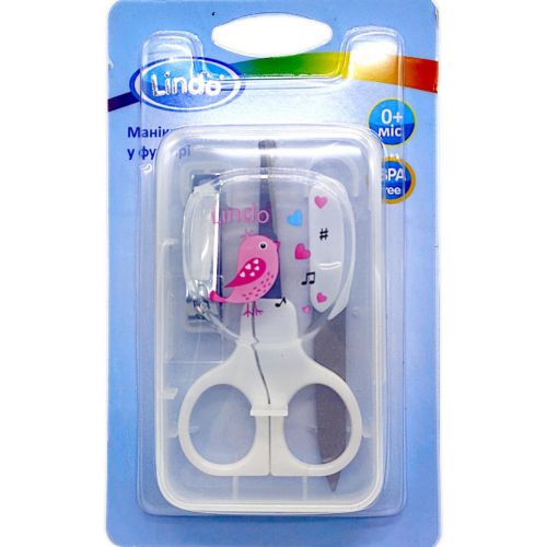 Детский маникюрный набор в футляре. В состав входят все необходимые инструменты по уходу за ногтями малыша: ножницы с закругленными концами, пилочки и щипчики. Ножницами можно легко укоротить и подправить форму ногтей, пилочка нужна для шлифования и избавления от зазубрин и щипчики для откусывания отросших ногтей. Изготовлен из пластика и нержавеющей стали.