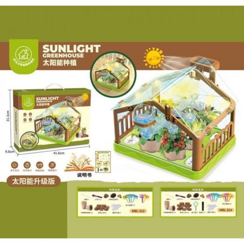 Теплица подсветки, лампа, солнечнаяпанель, семена, торфяные таблетки, горшки, в коробке