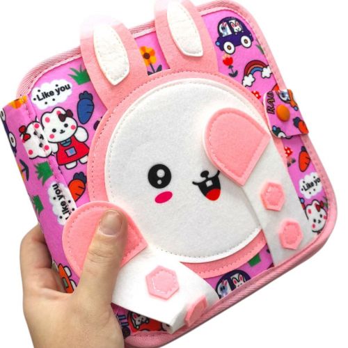 Мягкая книжка-бизиборд (фетр, пальчиковые игры, цифры, сортер по цвету, пискавка, элементы на липучках и кнопках)