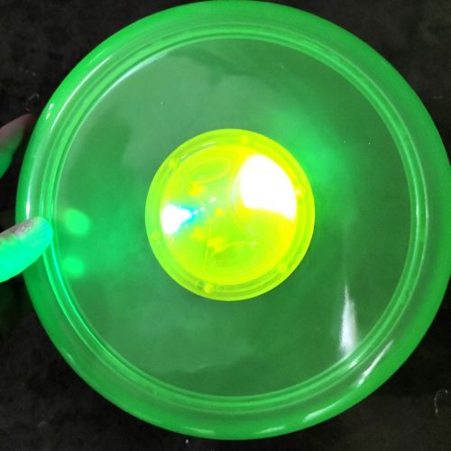 Тарелка "Фризби" из качественного пластика. Обладает невероятными аэродинамическими свойствами. Игрушка оснащена световыми эффектами (мигает разными цветами), которые активируются нажатием на кнопку. Летающая тарелка прекрасно подойдет для активных игр на улице. Диаметр – 22,5 м.