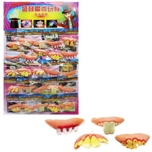 Набор резиновых зубов. Выглядят одновременно весело и жутко. Здесь есть зубы вампиров, ведьм и других магических существ. С этим набором вы можете почувствовать себя настоящим монстриком. Всего в комплекте 30 зубов. Изготовлены из резины.
