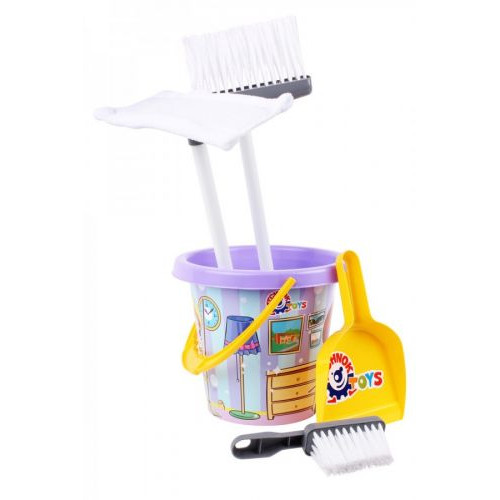 Комплектация: Ведерко, швабра, метла, щеточка и совок