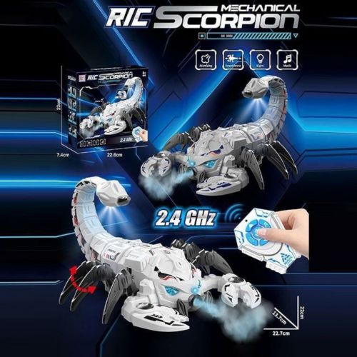Скорпион на радиоуправлении 2 вида, подсветка, от батареек, звуки, парогенерация, проектор, ходит, мелодии, пульт 2.4 GHz, в коробке