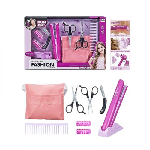 Набор парикмахера QY 014 (36) стайлер на батарейках, расческа, ножницы, фартук, бигуди, в коробке