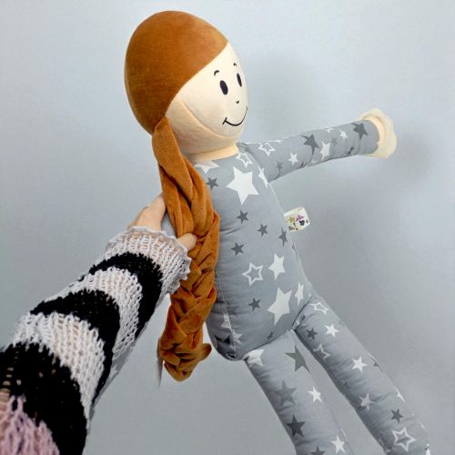 Мягкая кукла-обнимашка - это нежная игрушка в виде девочки, которая предназначена для обнимания и приносит тепло и уют. Она изготовлена из мягкого текстиля, имеет приятную на ощупь текстуру. Стилизованный под пижаму наряд и длинную косу. Размер куклы – 100 см.