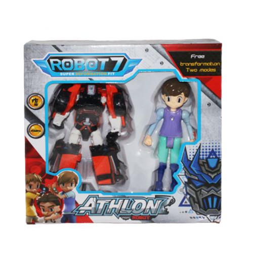 Пластиковый робот-трансформер, который может трансформироваться в технику передвижения. Высота робота 12 см., высота фигурки 14 см. Фигурка имеет подвижные части тела, также есть кнопка сзади, при нажатии на которую светится лампочка на груди.