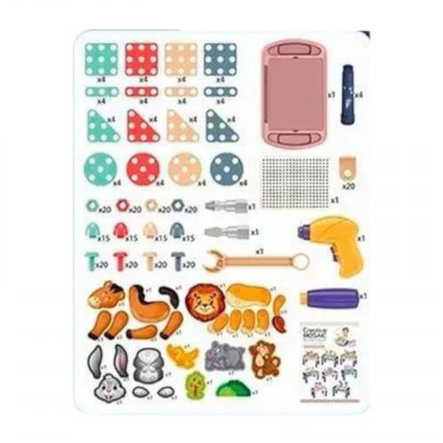 Мозаика 636-10 B339 деталей, поднос, столик, электрическая отвертка, инструменты, картонные элементы, инструкция в коробке