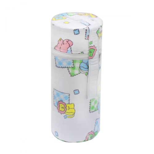 Контейнер для хранения бутылочек (рассчитан на 1 бутылочку). С принтом в виде милых зверушек. Хорошо подойдет для прогулок с ребенком. Выполнен из качественных материалов, безопасных для детей. Контейнер застегивается на молнии, долго сохраняет тепло, или предотвращает перегревание прохладительных напитков летом.