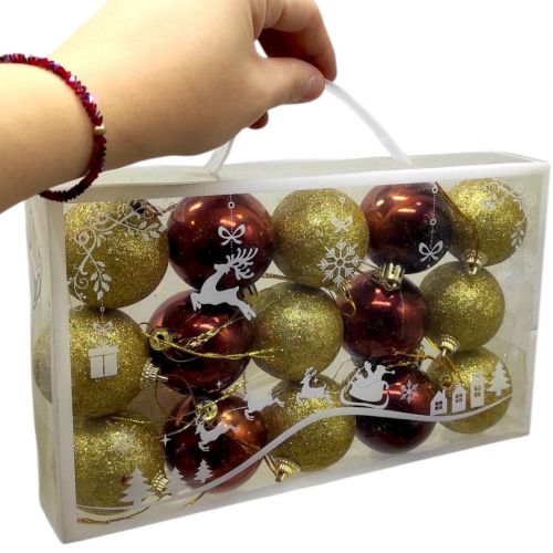 Новорічні прикраси, 15 штук, кульки, D=5 см, у слюді