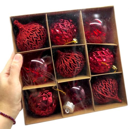 Новорічні прикраси. кульки, 9 штук, діаметр 7см, в коробці