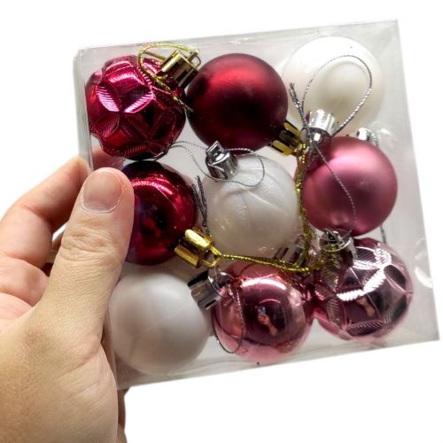 Новогодние украшения, 9 штук, шарики, D=4 см, в слюде