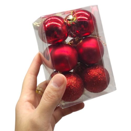 Новорічні прикраси 12 штук, діаметр - 3 см (ЧЕРВОНІ)