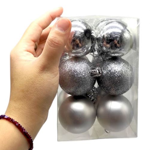 Новорічні прикраси 12 штук, діаметр - 4,5 см (СРІБНІ)