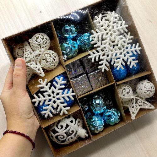 Новорічні прикраси, кульки, сніжинки, візерункові зірки, (52 штуки, діаметр 7 і 3.5 см)