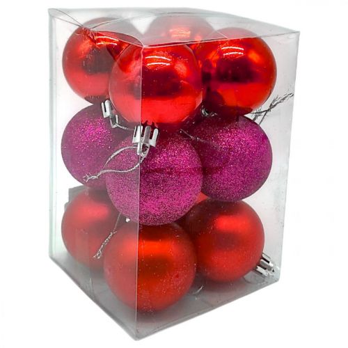 Новорічні прикраси 12 штук, діаметр - 4,5 см (ЧЕРВОНІ)