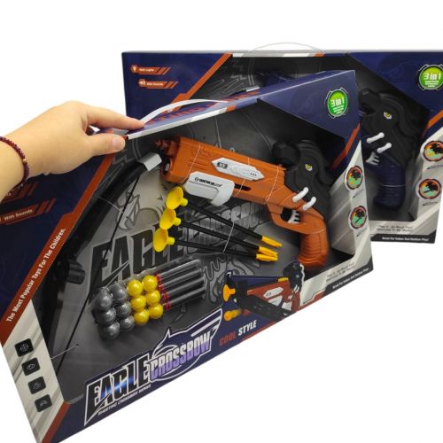 Арбалет (3 режими стрільби, підсвічування, механічний принцип роботи, звук орла, 3 стріли з присосками, 4 м’які патрони, 12 пластикових кульок)