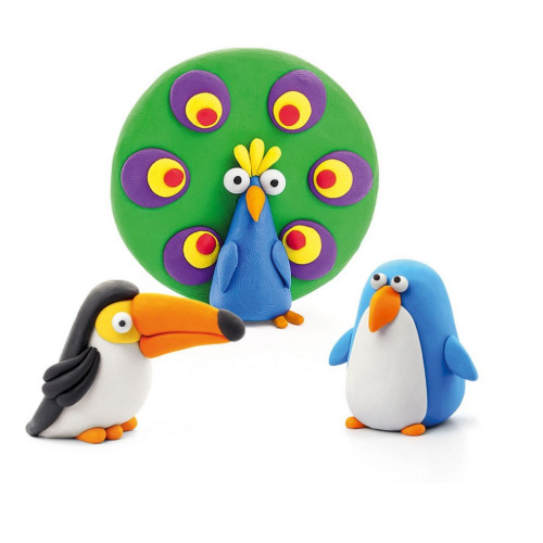 Набор самоотвердевающего пластилина ЛИПАКА – ПТИЦЫ: ПИНГВИН, ПАВЛИН, ТУКАН – развлечет и детей, и взрослых. С помощью анимационных инструкций в приложении HEY CLAY вы сможете слепить трех забавных птичек. Пластилин затвердевает на воздухе в течение 24 часов, после чего можно играть созданными фигурками.