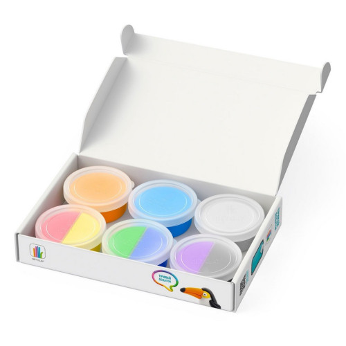В набор входит 6 баночек пластилина разного цвета.