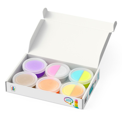 В набор может входить до 9 различных цветов (баночка может содержать пластилин двух разных цветов).