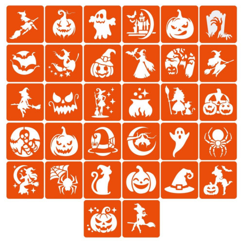 Набор трафаретов для био-тату "Хэллоуин №3" Fresh Tattoo hallowween-3-32, 32 трафарета 6х6 см