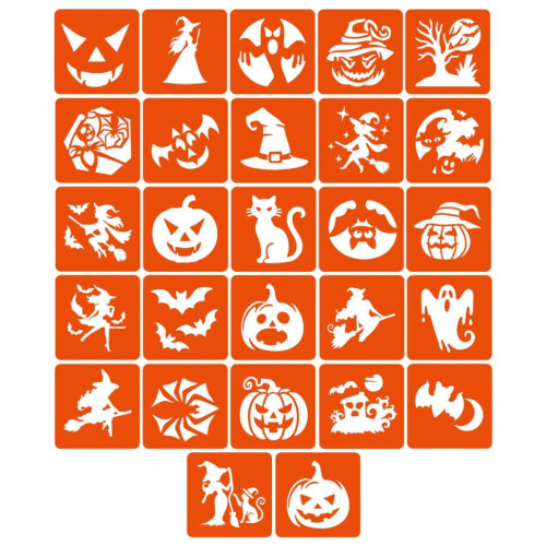 Набор трафаретов для био-тату "Хэллоуин №2" Hallowween-2-27, 27 трафаретов 5х5 см
