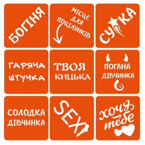трафареты для нанесения, размер 5×5 см – 9 шт.
