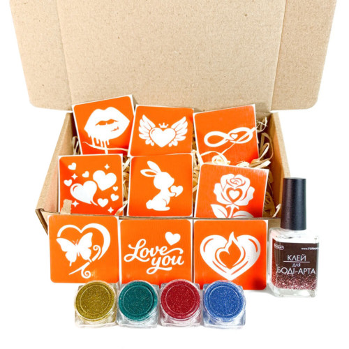 Набор для био-тату "Love Story #2 - глиттер" set-love-story-2-glitter 9 трафаретов
