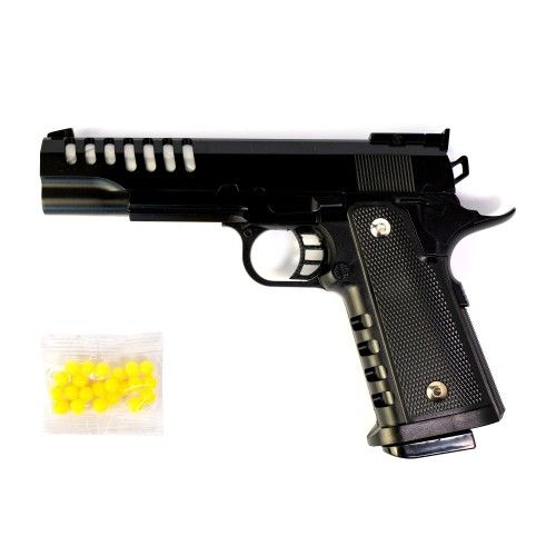 Пластиковый пистолет с маленькими патронами в виде шариков, это возможность проверить, насколько точен прицел и навыки у человека. Пластиковые пульки достаточно безопасны, но не рекомендуется стрелять по людям, особенно в лицо. Выполненный как бы настоящий! Из качественных и крепких материалов.